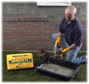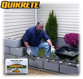 - Pick up the blocks and spread a full bed of QUIKRETE® Mason Mix or Mortar Mix on the footing. Use a trowel to furrow the mortar. It is important to have plenty of mortar along the bottom edges of the block for the first course.