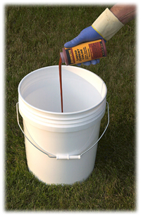 - Mix 1-1/4 gallons of clean water for every 10 ounces of color. When using a mechanical mixer add both liquids to the mixer and then add the concrete mix. When hand-mixing in a tub or wheelbarrow, mix the color and water, and then add the liquid to the concrete mix.
