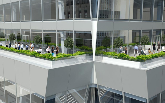 7 Bryant Park is a premier steel and glass 30 story 474,000 square foot office tower located in the heart of Midtown Manhattan. The beautifully designed building features a setback design for succeeding floors offering a unobstructed views of the park a stunning lobby with 20 foot ceilings welcomes visitors and an outdoor terrace on the 10th floors creates a beautiful experience.