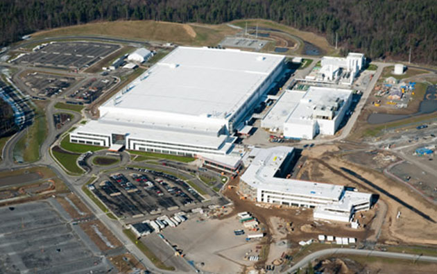 The New York factory for Global Foundries has the capacity to produce 300mm wafers at around 60,000 a month. The wafers are used to create integrated circuits, which are at the heart of all electronic devices.