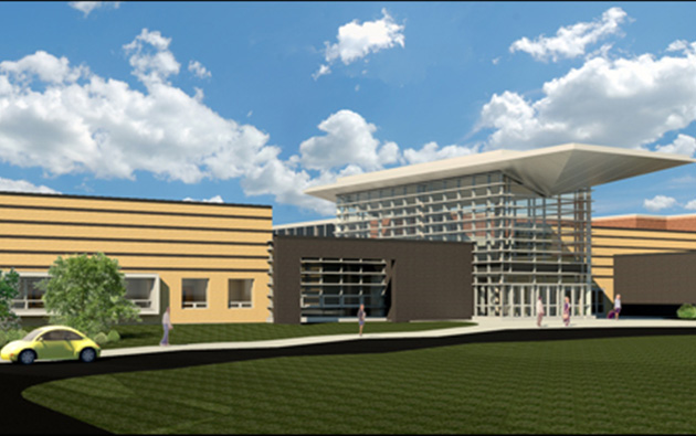 The updated additions of this 1200 student school, include a new two-story freshman academy and a three-story upper academy wing with a dramatic glass-walled library located to conveniently serve the needs of all the students. The existing gymnasium, auditorium and pool spaces will be completely renovated while a new cafeteria is constructed to the rear of the school to take advantage of the vistas overlooking the athletic fields.