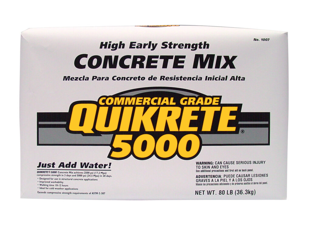 Quikrete 5000 achieves 5000 psi after 28 days cure time.