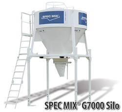 The SPEC MIX® system includes a large funnel-shaped silo and mortar, grout, or stucco manufactured to your specification.