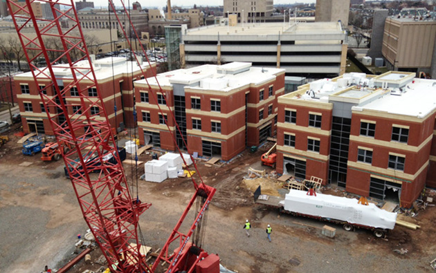 The New Jersey Institute of Technology (NJIT) is a new 214,000-SF building complex located in Newark New Jersey. The project included the Honors College building, which houses administration and amenities and student housing. Additionally, the project includes five Greek Housing structures that will be the new home for the college’s Greek community. The new complex was built to accommodate student’s housing needs. The new residence and amenities are timely additions as the university’s enrollment reaches 10,000 students. Utilizing a structure is a panelized load-bearing structural stud system. Panels were pre-fabricated off site and erected in place with precast plank floors. The unique specifications of the job required a special blend of additives and cementitious materials.